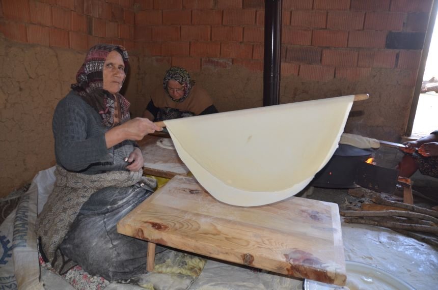 Ev hanımı 56 yaşındaki Şükran Arıcı, yufka ekmek yapımını çocuk yaşlarda annesinden öğrendiğini ve yaklaşık 45 yıldır yufka ekmek yaptığını söyledi. İlkbahar ve sonbahar olmak üzere yılda 2 defa yufka ekmek yaptıklarını anlatan Arıcı, "Kış hazırlıklarına bir iki ay önce başladık. Komşularımız ile birlikte toplanıp vazgeçilmezimiz olan yufka ekmek yapıyoruz. Yufka ekmek tek başına yapılmaz. En az 5-6 kişi olmalı. Bizlerde 5-6 arkadaş bir araya gelip toplanarak komşulara iki gün süre ile yufka ekmek yapıyoruz. Senede en az iki defa yufka ekmek yaparız. Bazen arada yaptığımız günlerde oluyor. Bazen ücretli olarak yufka ekmeği yapıyoruz. Bazen arkadaşlara ödünç ekmek yapıyoruz. Yaptığımız ekmeği ise sonbahara kadar yiyoruz. Sonbaharda ise yazın yiyeceğimiz ekmekleri yeniden yaparız. Bu ekmekler kesinlikle bayatlamaz. Zaten kuru bir şekilde saklıyoruz. Yiyeceğimiz kadar alıp sulayıp tüketiyoruz. Hamurunda kesinlikle mayası yok. Sadece tuz, un ve sudan oluşuyor. Yufka ekmek bizim olmazsa olmazımızdır” dedi.