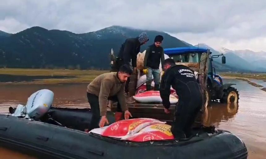 Antalya'nın İbradı ilçesinde jandarma ekiplerince şiddetli yağış nedeniyle yaylada mahsur kalan çoban ile 100 büyükbaş ve 450 küçükbaş hayvana yem ve erzak ulaştırıldı.