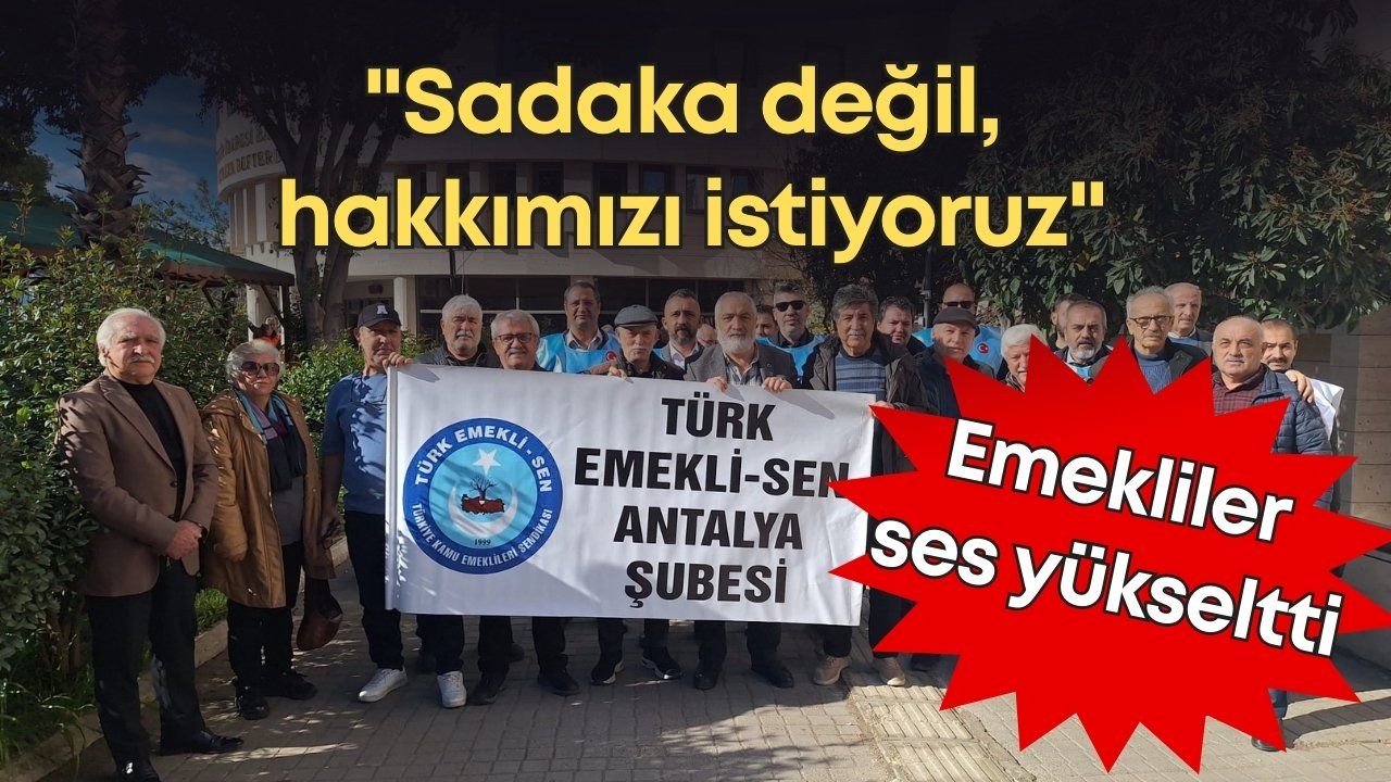 Türk Emekli-Sen Kamu Emeklileri Derneği Antalya İl Başkanı Zeki Öner Özgöçer ile çok sayıda memur emeklisinin katıldığı açıklamada, seyyanen zam talebi bir kez daha dile getirildi. Antalya Defterdarlığı önündeki basın açıklamasını okuyan Başkan Özgöçer, memur emeklilerinin ekonomik şartlar karşısında her geçen gün daha da zorlandığını belirtti. Özgöçer, “Bizler; ömrünü devletine adamış, vatanın her karış toprağında hizmet mührü bulunan, bu ülkenin harcını alın teriyle karmış memur emeklileriyiz. Bugün burada yalnızca bir istatistik ya da rakam olarak değil; Türkiye’nin hafızası, onuru ve omurgası olarak haykırıyoruz” dedi.