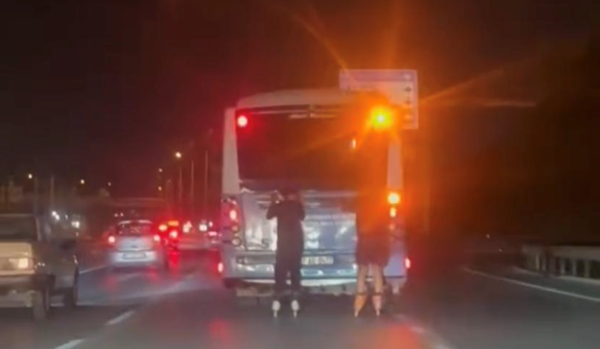 Alınan onca uyarılara kulak tıkayan gençler gün içerisinde farklı zamanlarda otobüslerin arkasına tutunmaya devam ediyor. Özellikle akşam saatlerinde yaşananlar ise daha da tehlikeli bir durum alıyor. Antalya’da kayda geçen yeni bir görüntüde 3 genç otobüsün arkasına tutundu. Gençler kendilerini korna çalarak uyaran diğer sürücülerin uyarılarına da adeta kulak tıkadı. Gençlerin o anları ise güvenlik kamerası tarafından kaydedildi. Durumun farkına varan şoför otobüsü durdurmak zorunda kaldı. Şoförün uyarısı ile ayrılan gençler izlerini kaybettirdi.