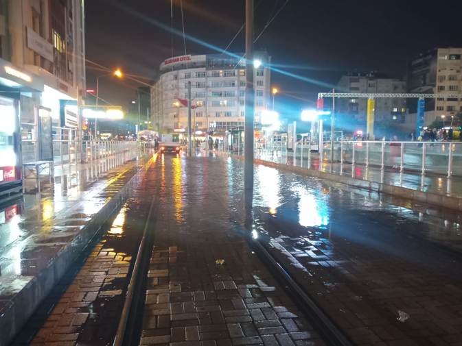 Şiddetli yağışın en çarpıcı etkilerinden biri toplu ulaşımda görüldü. Tramvay hatlarında biriken aşırı su nedeniyle güvenlik gerekçesiyle tramvay seferleri geçici süreyle durduruldu. Tramvay yolcu durakları da yağmur sularının birikmesi sonucu adeta göle döndü. Duraklarda bekleyen yolcular zor anlar yaşadı. Yetkililer, seferlerin normale dönmesi için su tahliye çalışmalarının aralıksız sürdüğünü bildirdi.
