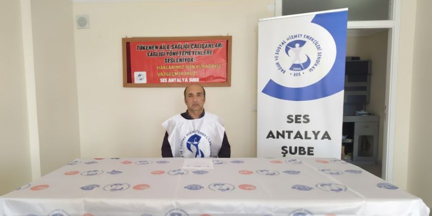 Sağlık ve Sosyal Hizmet Emekçileri Sendikası (SES) Antalya Şube Eş Başkanı Kaan Taşer, aile hekimliği sisteminde yaşanan sorunlara dikkat çekmek amacıyla SES Antalya Şube binasında basın açıklaması yaptı. Taşer, Aile Sağlığı Merkezleri’nde (ASM) hem sağlık emekçilerinin hem de yurttaşların ağır bir tabloyla karşı karşıya olduğunu belirterek, “Haklarımız için buradayız, vazgeçmiyoruz” ifadelerini kullandı.
