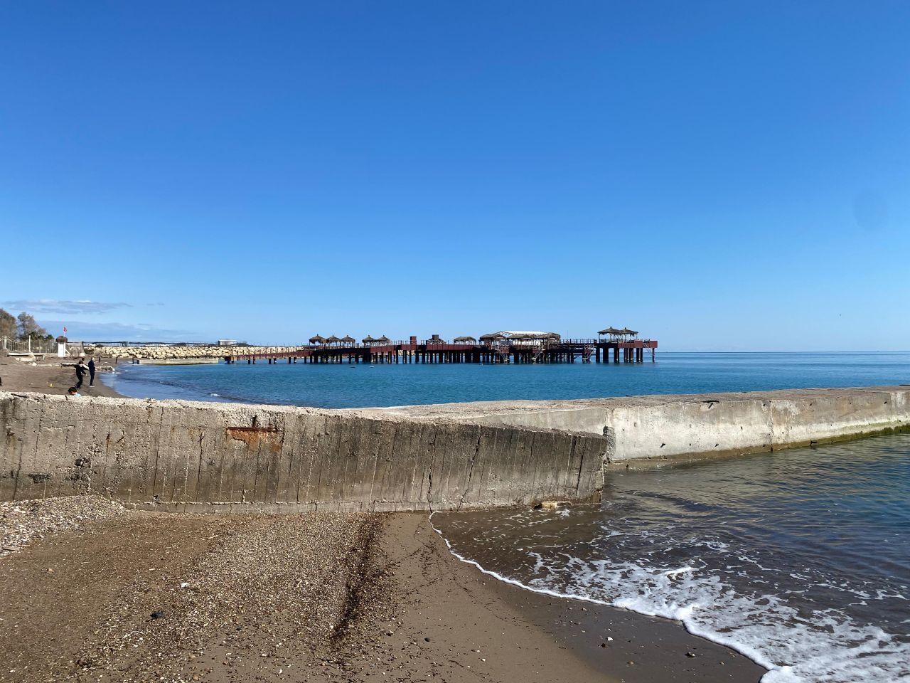 Kundu’da deniz seviyesi 1 hafta içerisinde yaklaşık 2 metre çekildi. İki farklı zaman da çekilen fotoğraf karelerinin ilkinde beton duvarın denizin içerisinde kaldığı görülürken dün çekilen fotoğrafta ise deniz seviyesi beton duvarın hemen başlangıç noktasında kaldı. Denizin çekilmesi hem bölge sakinlerini hem de tatilcileri tedirgin etti. Bölgede balık tutan İsa Çakır, “Ben geçen haftada geldim. O zaman deniz bu betonun yarısına kadar geliyordu. Şimdi deniz seviyesi betonun başlangıç noktasına kadar inmiş. Geçen yıl da buna benzer bir durum yaşandı.” dedi.