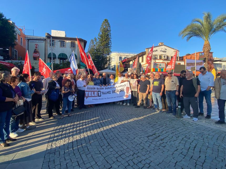 Attalos Heykeli önünde basın açıklaması yapan Antalya Emek ve Demokrasi Güçleri, Tele1’e kayyum atanmasının yalnızca bir kuruma yönelik müdahale değil, aynı zamanda düşünce ve ifade özgürlüğüne yönelik açık bir saldırı olduğunu vurguladı.