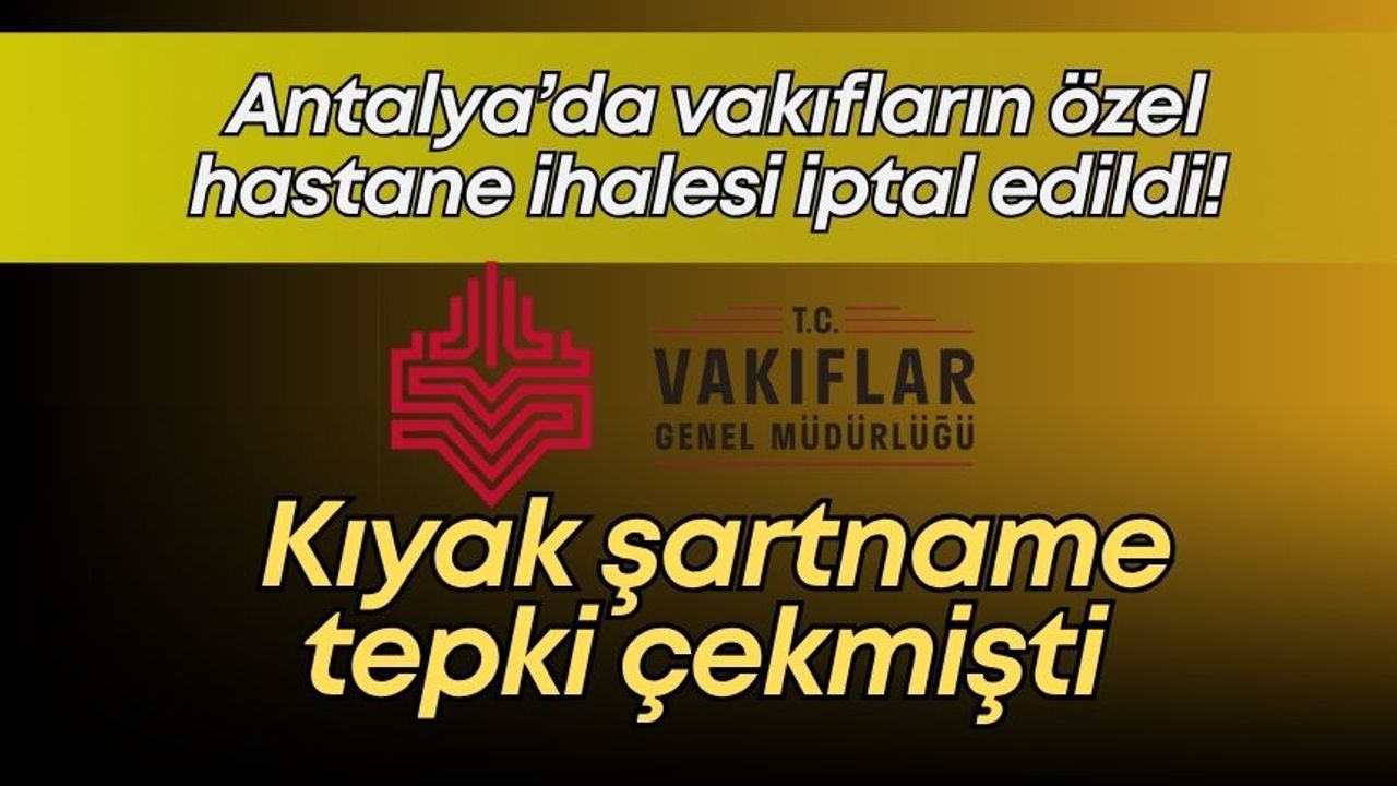 Antalya Vakıflar Bölge Müdürlüğü’nün Muratpaşa ilçesi Bayındır Mahallesi bulunan Sadrazam Kuyucu Murad Paşa Bin Abdüsselam Vakfı’na ait taşınmaz üzerine özel hastane yapılması için haleye çıkıldı. Körfez Gazetesinden Ertuğrul Gün'ün haberine göre hastane yapımı karşılığı 29 yıllık kiralama ihalesinin şartnamesinde vakıf çalışanlarına özel ayrıcalıklar yer aldı. www.antalyakorfez.com internet haber sitemizin gündeme taşıdığı, “vakıf çalışanlarına ayrıcalık” maddesi büyük tepki çekince ihale iptal edildi.