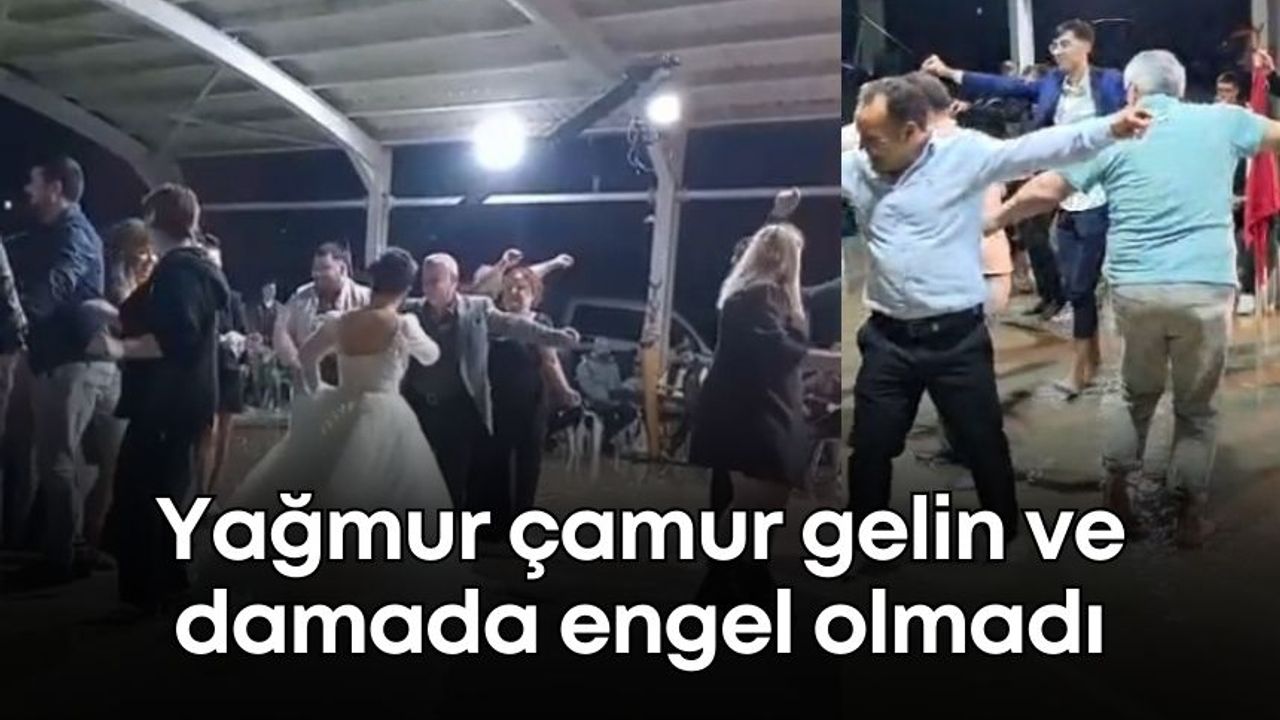 Cep telefonu ile kaydedilen görüntülerde, gelin ve damadın su dolu pistte paçaları sıvamış davetlilerle birlikte eğlenceye devam ettiği görüntüler yer aldı. Bazı misafirler ise sandalyelerin üzerine çıkarak sulardan korunmaya çalıştı. Organizasyon ekibi tarafından düğün alanında suların çekilmesiyle, yağışa rağmen müzik kesilmedi ve eğlence devam etti.