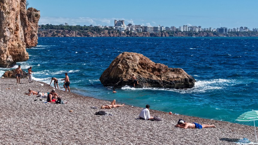 Sıcak havayı fırsat bilen Antalyalılar ve tatilciler, denize girmek için Konyaaltı Sahili'ne akın etti. Sahil boyunca yürüyüş yapanlar ve güneşlenenler, deniz suyu ile serinlemeyi tercih edenler ile renkli bir manzara oluşturdu. Bazı denize girenler, dalgalı denizde zor anlar yaşarken, kimileri ise kayalıklardan suya atladı.