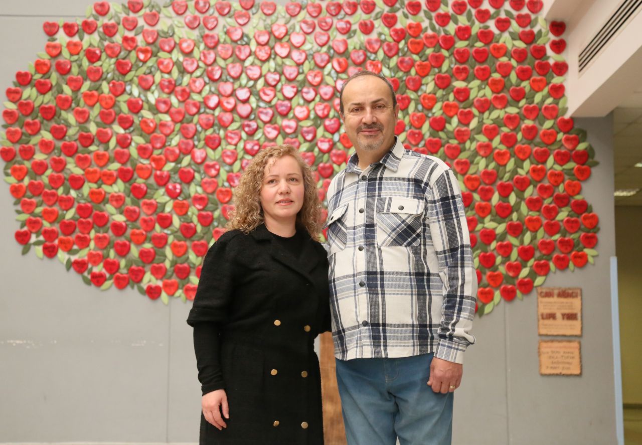 Akdeniz Üniversitesi (AÜ) Prof. Dr. Tuncer Karpuzoğlu Organ Nakli Merkezi'nde 12 yıl önce kalp nakli olan, o dönem anlaşmazlık yaşadığı eşinden boşanan Atilla Alay (54), kalp naklinden sonra tanışıp aşık olduğu Nevin Alay (45) ile evlendi. 5 yıldır evli olan çift, hastane kontrollerine birlikte geliyor.