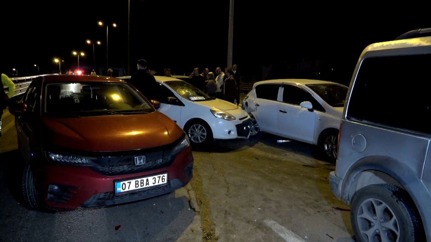 Kaza, Muratpaşa ilçesi Kızılırmak Caddesi'nde gece saat 23.30 sıralarında meydana geldi. Edinilen bilgiye göre, Kızılırmak Caddesi'nden Adnan Menderes Bulvarı'na ilerleyen 45 TM 266 plakalı otomobil, sürücüsünün direksiyon hakimiyetini kaybetmesi sonucu refüje çarpıp bulvar üzerinde yan döndü. O sırada arkadan gelen araçlar duramayarak birbirine çarptı.