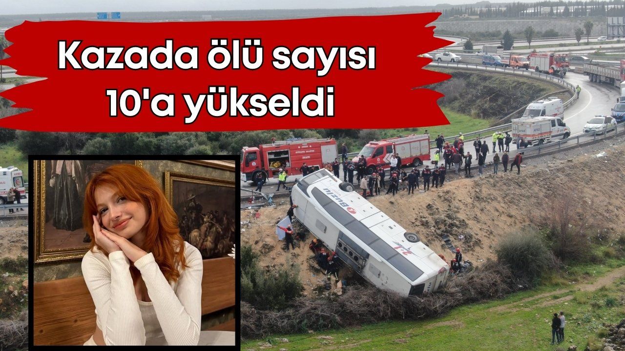 Antalya'da yolcu otobüsünün devrilmesi sonucu meydana gelen trafik kazasında hayatını kaybedenlerin sayısı 10'a yükseldi. Ağır yaralanan üniversite öğrencisi 19 yaşıdaki Sudem Çakmak, yaşam savaşını kaybetti.