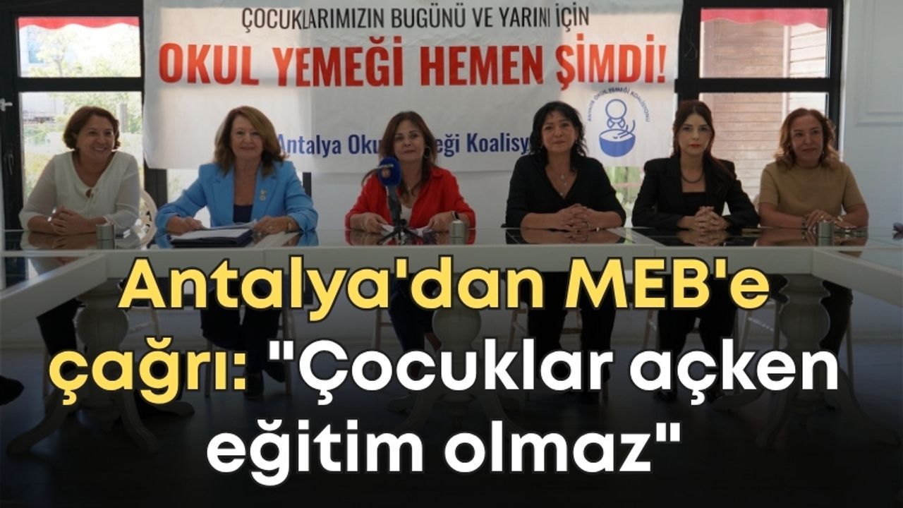 Antalya Okul Yemeği Koalisyonu, 'Her Çocuğa Bir Öğün Okul Yemeği Her Okula Temiz Su İçin' başlıklı basın toplantısı düzenledi. Koalisyon adına konuşan Veli-Der Antalya Şube Başkanı Tülin Koç, "Okul yemeği kamusal bir hak, politik bir sorumluluktur. Bu buluşma bir farkındalık etkinliği değil çocukların geleceğini koruma, sosyal devletin sorumluluğunu hatırlatma ve politik iradeyi göreve çağırma eylemidir" dedi.