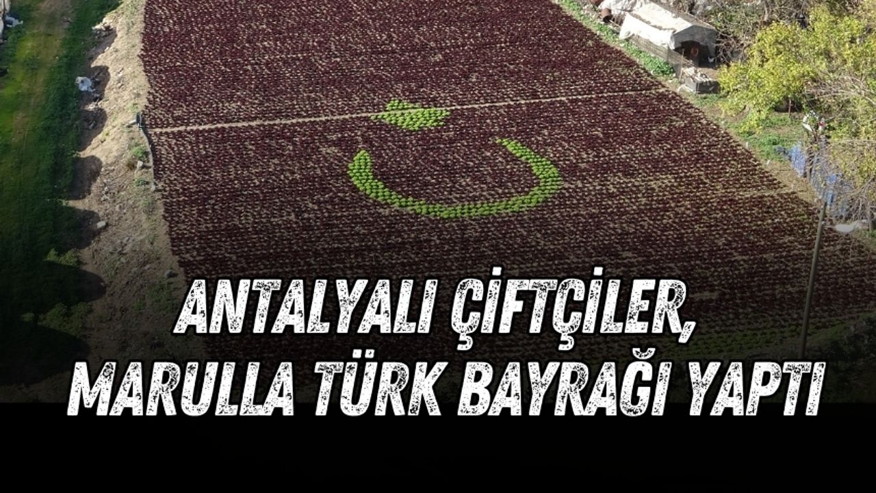 Antalya'da iki üreticinin, bir buçuk dönümlük tarlaya diktiği marullarla hilal ve yıldız deseni oluşturması yoğun ilgi gördü. Üreticiler, "Vatan ve bayrak sevgimizi toprağa yansıttık" dedi.