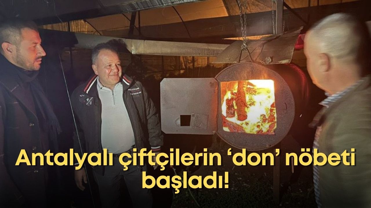 Antalya’nın Serik ilçesinde çiftçiler, geceleri seralarındaki ürünleri don tehlikesine karşı korumak için nöbet tutuyorlar. İlçede hava sıcaklığı geceleri sıfırın altına düşerken, çiftçiler seralarındaki ürünleri dona karşı korumak için nöbet tutmaya başladılar. Antalya Ziraat Odası Başkanı Nazif Alp, don olaylarına karşı çiftçilerin dikkatli olmaları için çağrıda bulundu.