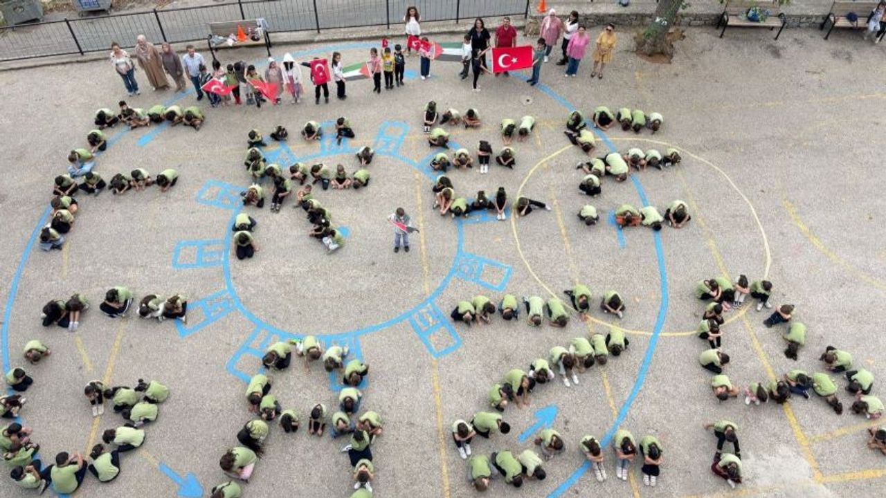 Etkinlik sırasında öğrenciler, Türk ve Filistin bayraklarını da dalgalandırdı. Öğrencilerin yaptığı koreografi, öğretmenleri tarafından görüntülendi. Görüntüler kısa sürede sosyal medyada beğeni topladı.