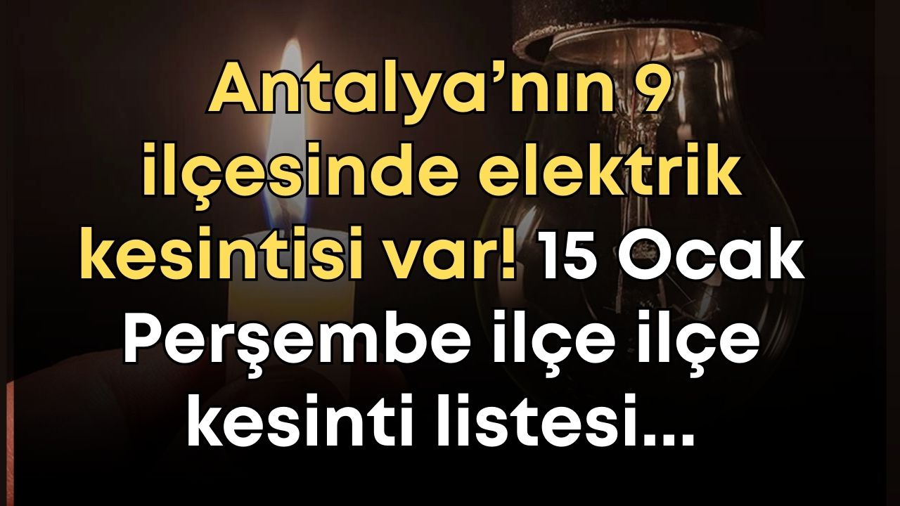Akdeniz Elektrik Dağıtım AŞ (AEDAŞ), Antalya merkez dahil 9 ilçesinde bakım ve onarım çalışmaları nedeniyle elektrik kesintileri yapılacağını duyurdu. İşte 15 Ocak Perşembe günü elektrik kesintisinin yaşanacağı ilçeler…