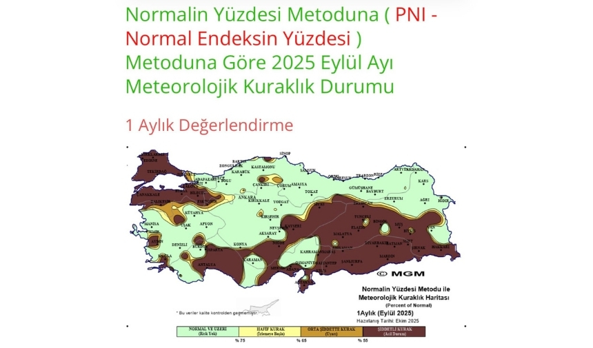 Meteoroloji Genel Müdürlüğü’nün (MGM) Normalin Yüzdesi metoduna göre hazırladığı Eylül 2025 meteorolojik kuraklık haritası, Antalya’nın doğusunda kuraklığın derinleştiğini ortaya koydu. Alanya, Gazipaşa, Manavgat ve Gündoğmuş ilçeleri haritada “şiddetli kurak” kategorisinde yer aldı. Toprak neminin hızla azaldığı bölgede üreticiler, özellikle tropikal meyve ve narenciye bahçelerinde verim düşüklüğünden endişeli.