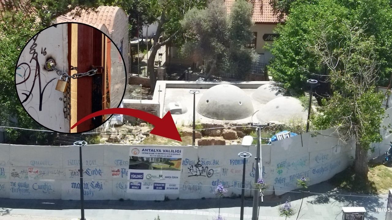 Fakat restorasyon işlemi durdu. Kapısına kilit vurulan hamamın ne zaman açılacağı ise bilinmiyor. Antalya'nın kalbinde yer alan Mevlevihane bahçesindeki Osmanlı ve Selçuklu dönemlerine ait iki kapısı olan 55 metrekarelik tarihi hamam tekrar ziyaret edileceği günleri bekliyor.
