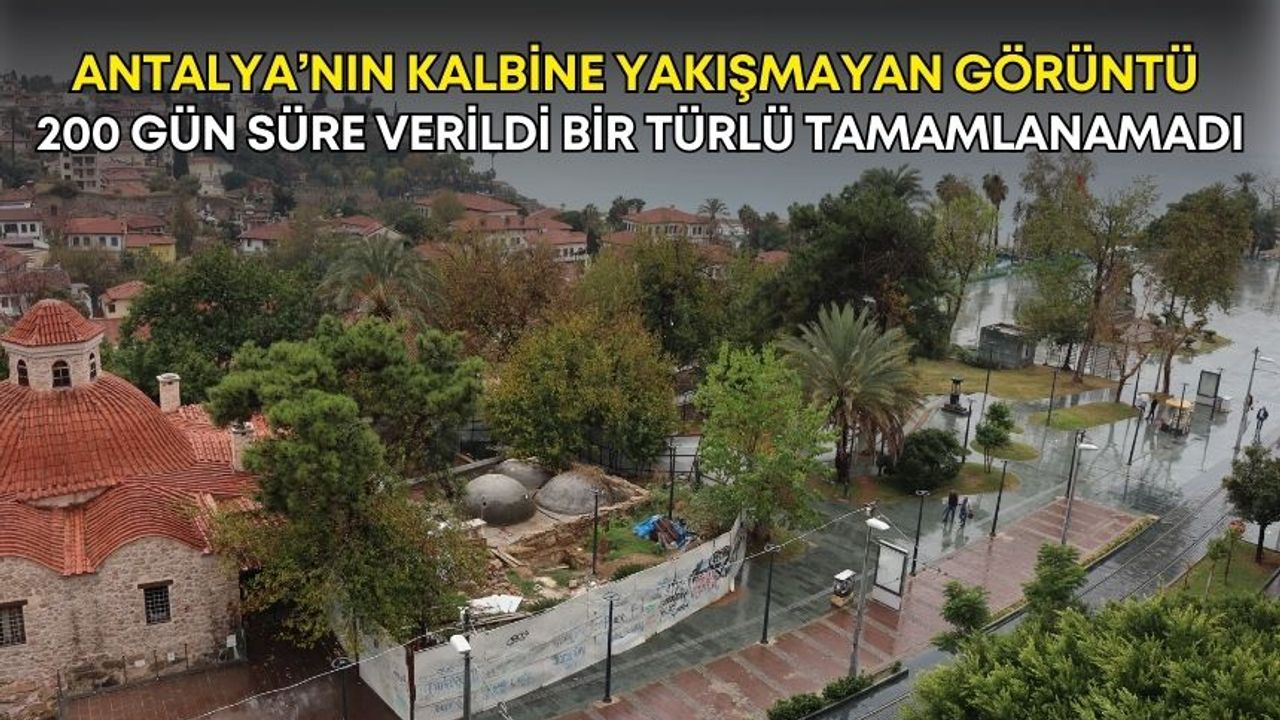 Antalya Valiliği Yatırım İzleme ve Koordinasyon Başkanlığı Kültür Varlıkları Birimi kontrolünde gerçekleştirilen restorasyon çalışmaları 200 gün süre dolmasına rağmen bir türlü tamamlanamadı. Binlerce turistin güzergahında yer alan restorasyonun tabelalarından geriye görsel kirlilik kaldı. Tabelalardaki görsel kirlilik, turistlerin de dikkatini çekiyor. Tabelalar çalışmaların uzaması üzerine karalama tahtasına dönüştü.