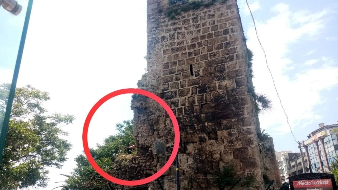 Antalya’nın Muratpaşa ilçesinde tarihi surlara çıkan bir kişi, hem kendi hayatını riske attı hem de çevrede endişe yarattı. Olay yerine gelen ekipler, şahsı güvenli şekilde indirmek için yoğun çaba harcıyor.