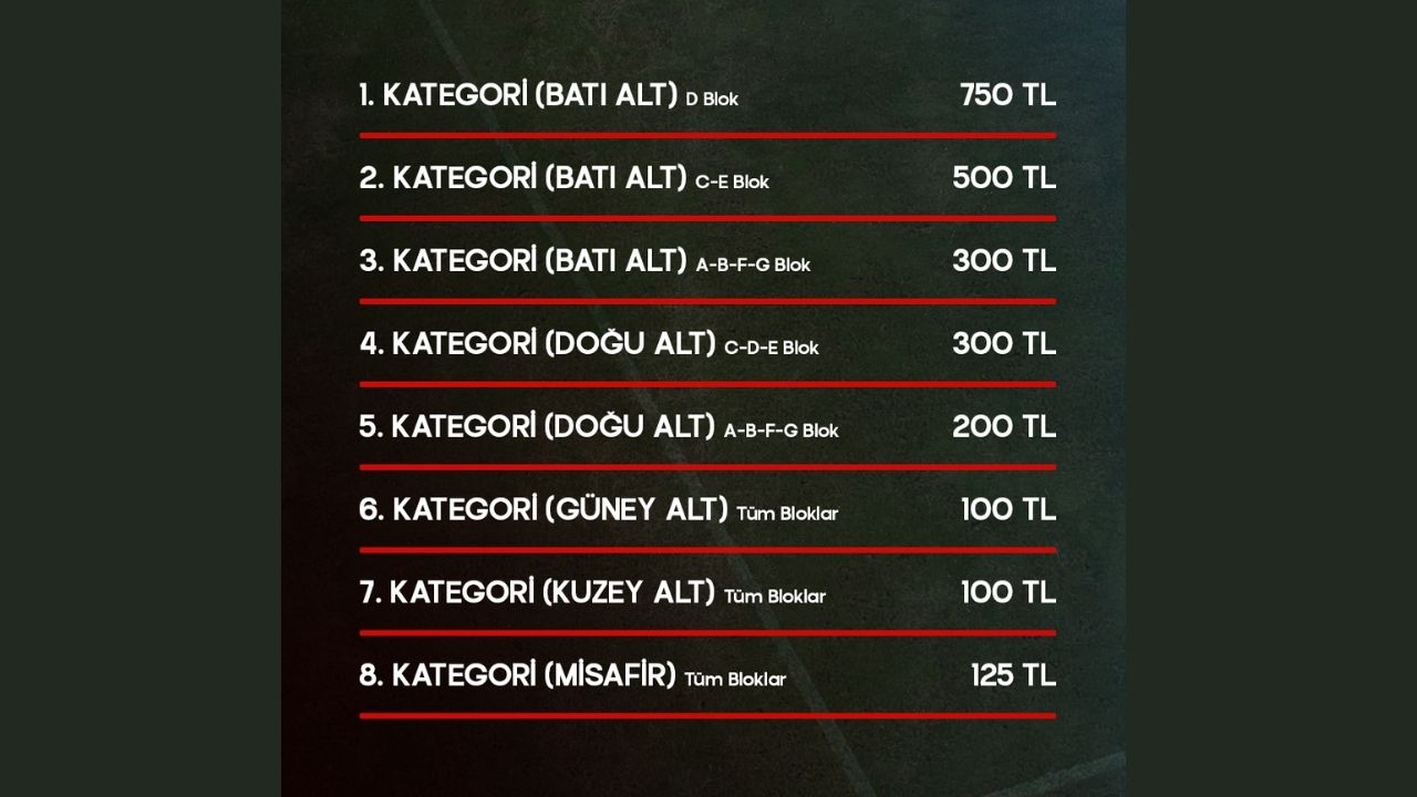· Misafir tribünü ise 125 TL