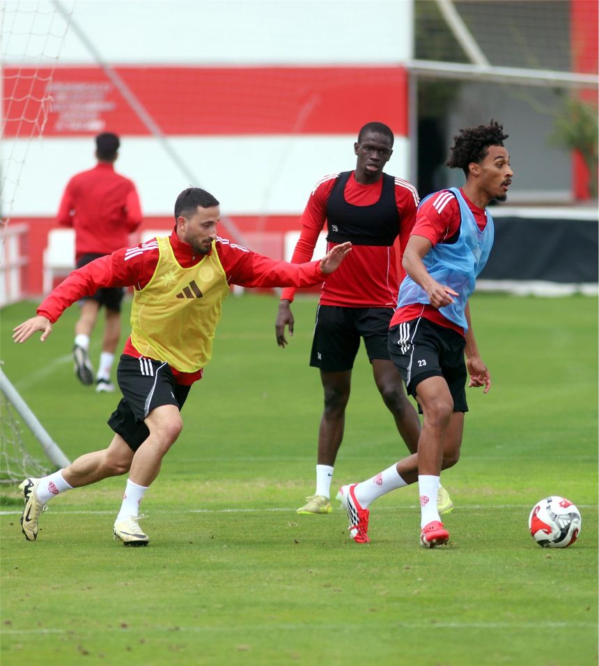 Atilla Vehbi Konuk Tesisleri’nde teknik direktör Sami Uğurlu yönetiminde gerçekleştirilen antrenmanlarda taktik ağırlıklı çalışma yapıldı. Samsunspor maçında aldığı ceza nedeniyle takımın başında yer alamayacak olan Uğurlu’nun, antrenmanda oyuncularıyla sık sık birebir konuşarak taktik verdi.
