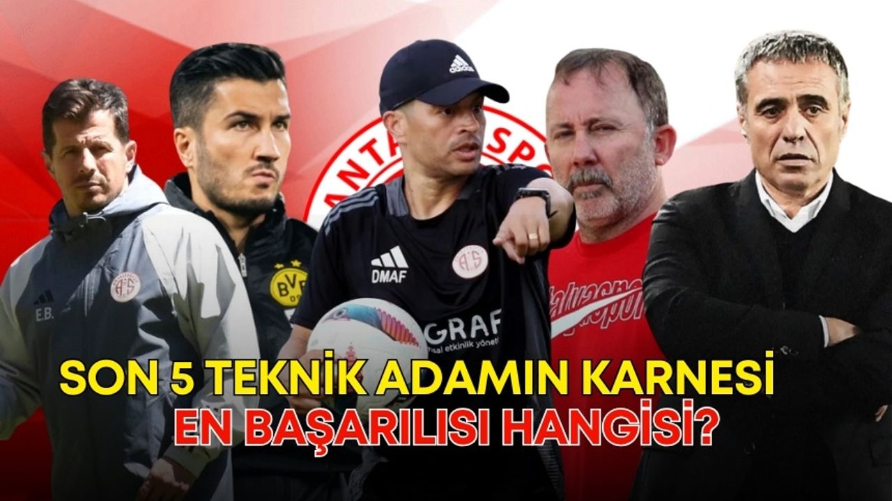Hazırlanan raporlara göre Antalyaspor’da son 5 yılda en başarılı olan teknik direktör Nuri şahin oldu. Şahin, son 5 yılda takımı en uzun süre çalıştıran isim olurken ligi 7’nci sırada bitirmesi de puan cetvelindeki en iyi sıra oldu. Şahin’den sonra Antalyaspor’u Türkiye Kupası’nda final oynatan Ersun Yanal, ikinci en iyi dönemi geçiren teknik adam oldu.