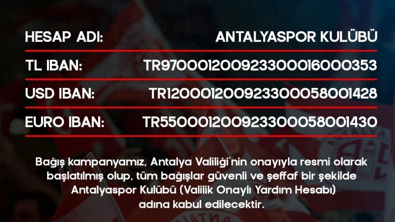Vergi borcu için yarın akşama kadar 23 milyon TL bulması gereken Antalyaspor, çözüm için sosyal medya üzerinden harekete geçti. Kulüp, Antalya Valiliği onayıyla resmi bağış kampanyası başlattığını duyurdu. Paylaşımda, “Bu şehir seninle ayağa kalkar” ifadeleriyle taraftar ve şehir halkına çağrıda bulunuldu.