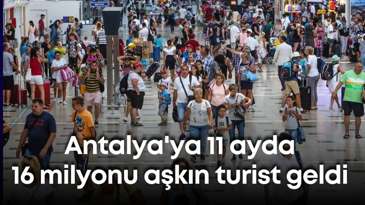 Antalya turizminde 2025 yılının 11 aylık döneminde, tüm zamanların rekor yılı olan 2024'ün aynı dönemine göre yüzde 1,1'lik artışla yeni bir rekora imza atıldı. Kente bu dönemde 192 ülkeden turist geldi. 1 Ocak- 30 Kasım tarihleri arasındaki 11 ayda Antalya'ya gelen turist sayısı 16 milyon 795 bin 32 olarak gerçekleşti. Geçen yılın aynı dönemine göre turist sayısındaki artış 188 bin 324 oldu. Rus ve Alman turistlerin en önemli iki kaynak pazar olduğu kentte bu yıl 11 aylık dönemde gelen her 2 turistten biri Rus veya Alman.