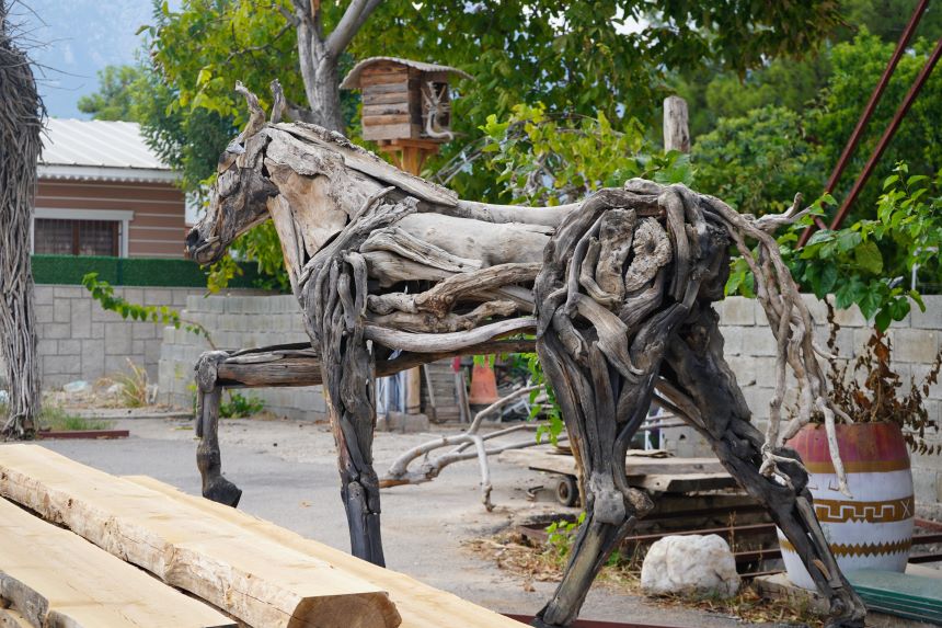Antalya'da yaşayan driftwood sanatçısı Osman Dönmez, orman, dağ ve dere yataklarında doğanın kendi döngüsüyle devrilmiş veya dağılmış ağaç parçalarını toplayarak heykeller yapıyor. Doğadan aldığı parçaları yeniden doğaya kazandıran Dönmez, "Doğayı sevdiğim için doğadan ilham alıyorum. Bu malzemeleri birleştirip, hayvan figürlerine dönüştürüyorum" dedi.