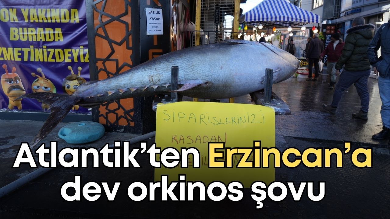 Erzincan’da balık tezgâhlarında ender rastlanan bir görüntü yaşandı. Atlantik Okyanusu’ndan avlanan ve yaklaşık 3 metre uzunluğa, 365 kilogram ağırlığa sahip dev orkinos balığı, kent merkezinde sergilenerek vatandaşların beğenisine sunuldu.
