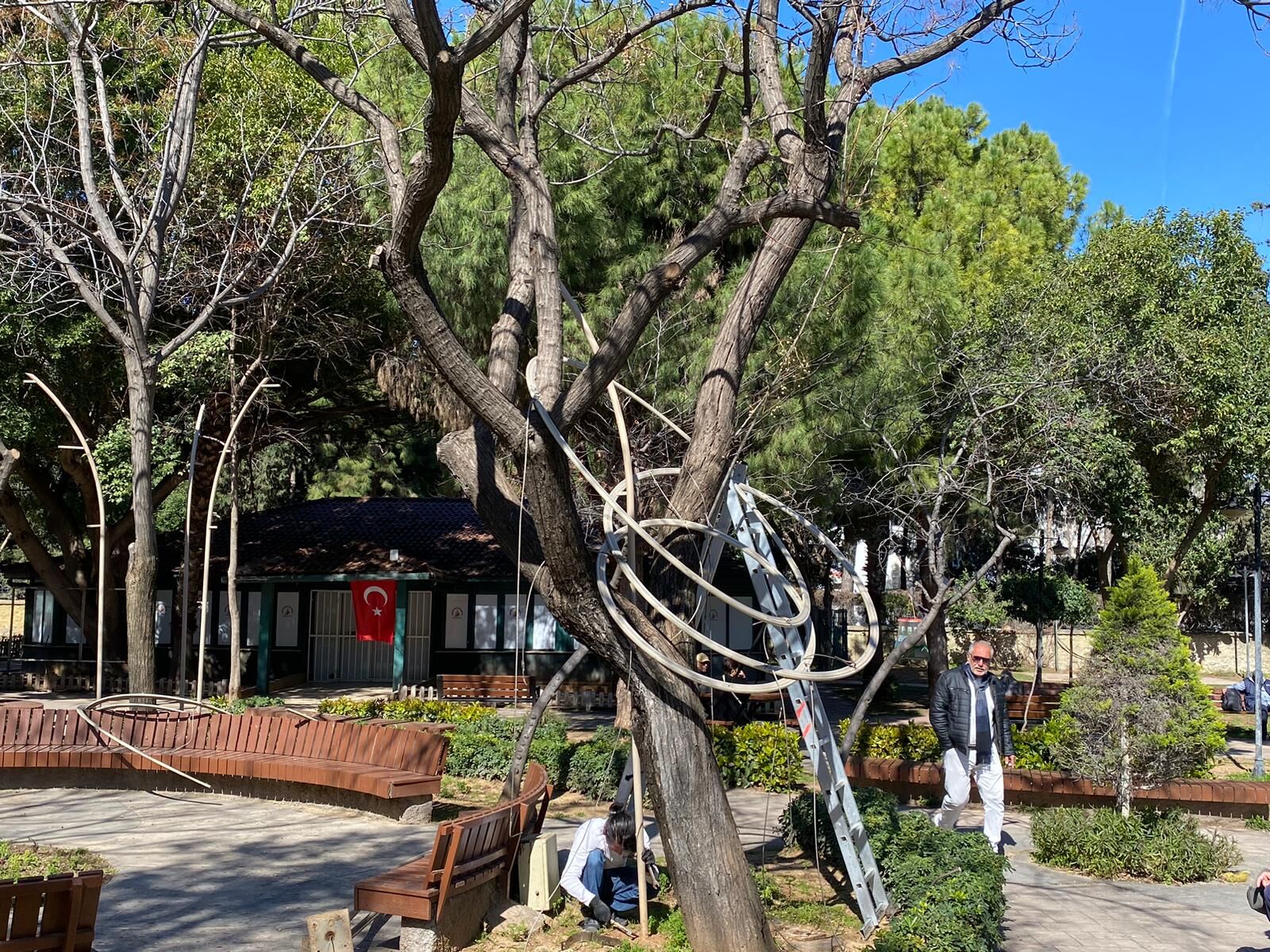 Antalya Körfez Gazetesi muhabiri Ertuğrul Gün'ün haberine göre, Muratpaşa İlçesi 100’üncü Yıl Bulvarı üzerinde, kentin en işlek noktalarından birinde yer alan parkta, çok sayıda ağaca yıllar önce aydınlatma mekanizması kurulduğu görüldü. Özellikle özel günlerde kullanılmak üzere kurulan mekanizma led ışıklar ile çembere alındı. Her bir ağaçta 4-5 çember yer alırken bu çemberler düşmemesi için kelepçe ile sabitlenerek ağacın üst gövdesine bağlandı. Aradan geçen zaman içerisinde kelepçeler unutuldu. Ağaçların dallarında ciddi hasara yol açtı. Birçok kelepçe dalların içerisinde sıkıştı kaldı.