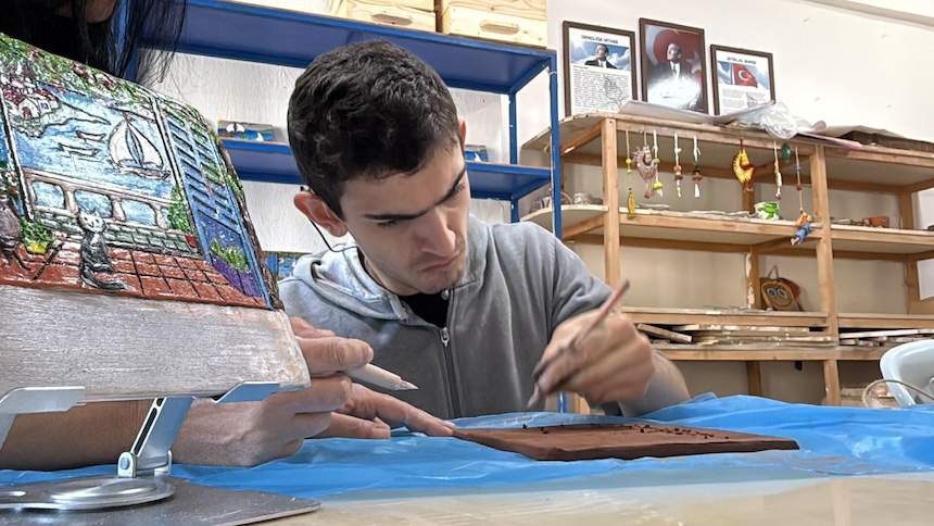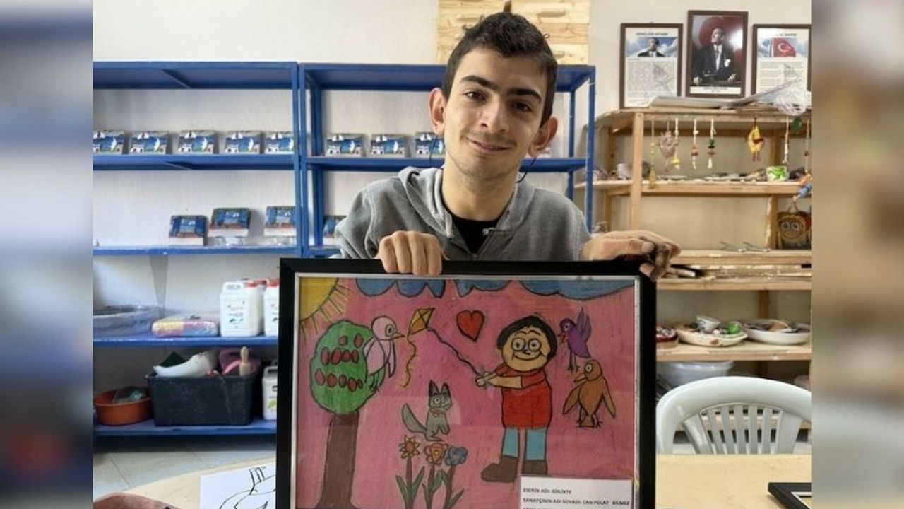 Muğla'nın Bodrum ilçesinde konuşma güçlüğü bulunan kas hastası Can Polat Bilmez'in resim yeteneği, eğitim gördüğü Yahşi Özel Eğitim Uygulama Okulu'nun 3'üncü kademesinde keşfedildi. Küçük yaşta geçirdiği sarılık sonrası yapılan kan değişimi sırasında beynindeki damarın oksijensiz kalması nedeniyle kas hastalığına yakalanan Bilmez, 9 yıldır devam ettiği okulunda hem sanatla hem de sosyal etkinliklerle hayata tutunuyor. Can Polat Bilmez'in okulda resim çalışmalarına katılarak yaptığı eserler, öğretmenlerinin ve arkadaşlarının beğenisini topluyor.