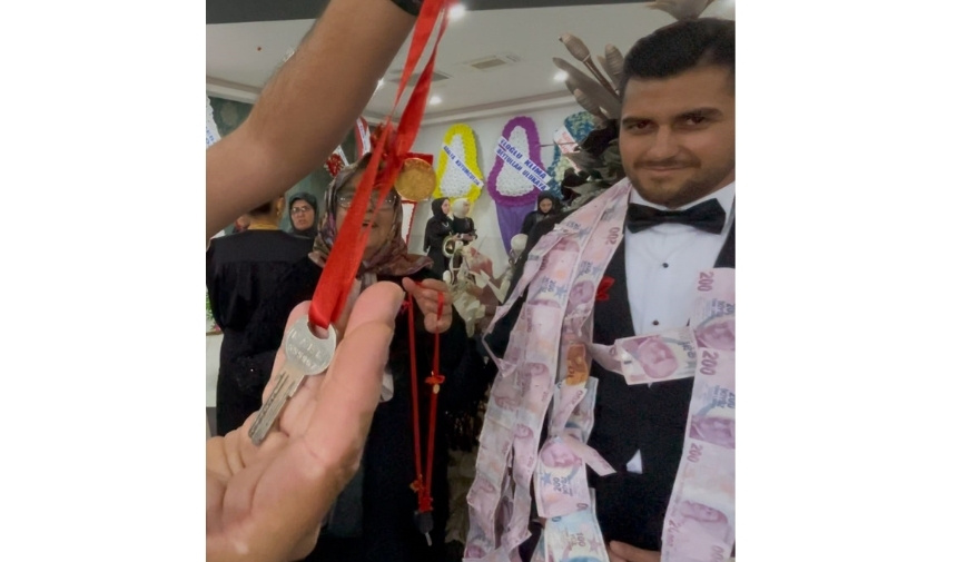 Yakın zamanda babasını kaybeden damat Hüseyin Arslan'ın babaannesi Emine Arslan takı töreninde tek torununa bir ev ve son model otomobil anahtarının yanı sıra İncekum'da bir adet arsa taktı. Ev ve araç anahtarını babaanne Emine Arslan ile birlikte Hüseyin Arslan'a takan damadın kuzeni Fuat Sönmez, "Damadın babaannesi Emine Arslan'dan merkezde bir adet daire ve son model bir otomobil, tapusu yanımızda yok ama bir adette İncekum'da arsa, bir tane torunu zaten" diyerek taktı.