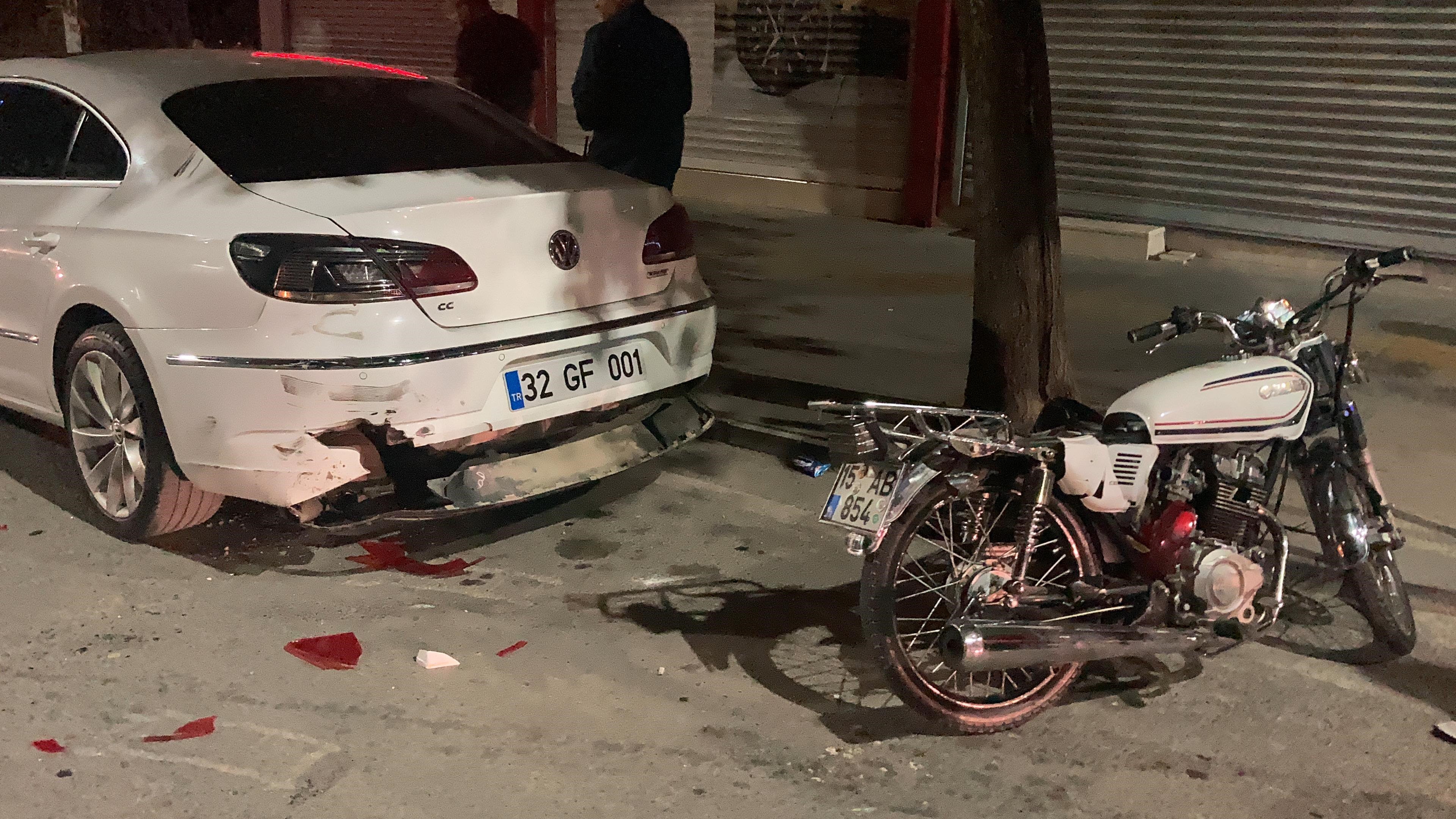MOTOSİKLETİYLE PARK HALİNDEKİ OTOMOBİLE ÇARPI