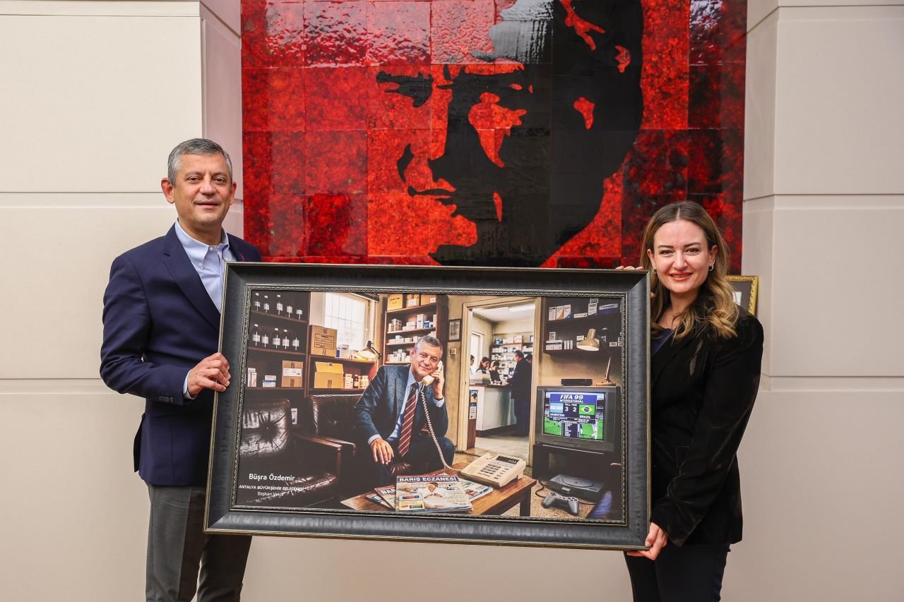 Antalya Büyükşehir Belediye Başkanvekili Büşra Özdemir, CHP Genel Başkanı Özgür Özel’i makamında ziyaret etti. Görüşmede Antalya’daki çalışmalar ele alınırken, Özdemir’in '87. dakika' vurgulu simgesel hediyesi dikkat çekti.