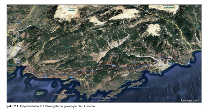 Son yıllarda Antalya’nın batı ilçelerinin gündeminde olan Finike, Demre, Kaş, Kalkan bölünmüş yol projesi, büyük bir yıkım yaratacağı gerekçesiyle yöre halkının tepkisini çekiyordu. Korunan alanlar başta olmak üzere, orman arazileri ve tarım arazilerinden geçen yol güzergahının bir bölümü mevcut yolun olduğu alandan geçiyor. İddianamede imar planı değişikliği ile rant yaratmaya konu olan arazide yeni yol projesinin mevcut yolla kesiştiği bölgede yer alıyor.