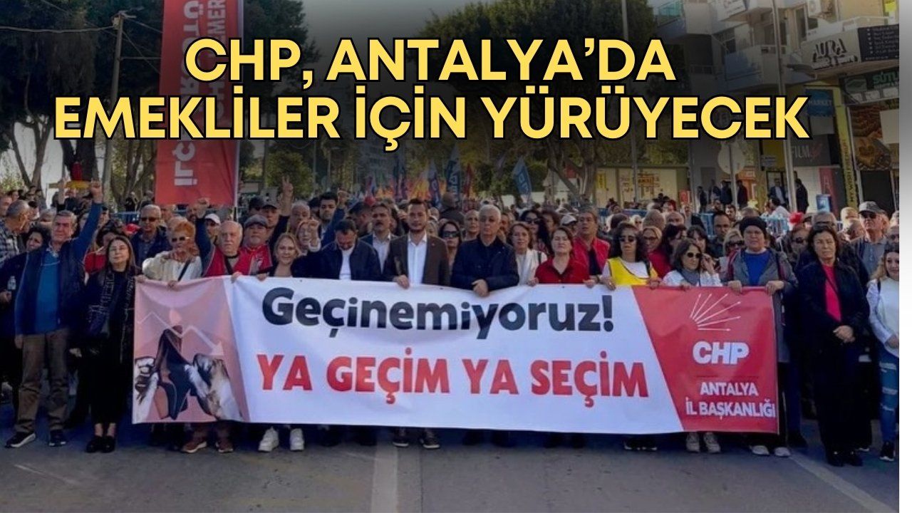 Cumhuriyet Halk Partisi Antalya İl Örgütü, emekli maaş zammının açıklanacağı 5 Ocak 2026 tarihinde yürüyüş düzenleyecek. Emeklilerin sorunlarına dikkat çekmek için düzenlenecek olan yürüyüş, Yavuz Özcan Parkı’ndan başlayacak. Yürüyüşün ardından TÜİK İl Müdürlüğü önünde basın açıklaması gerçekleştirecek.
