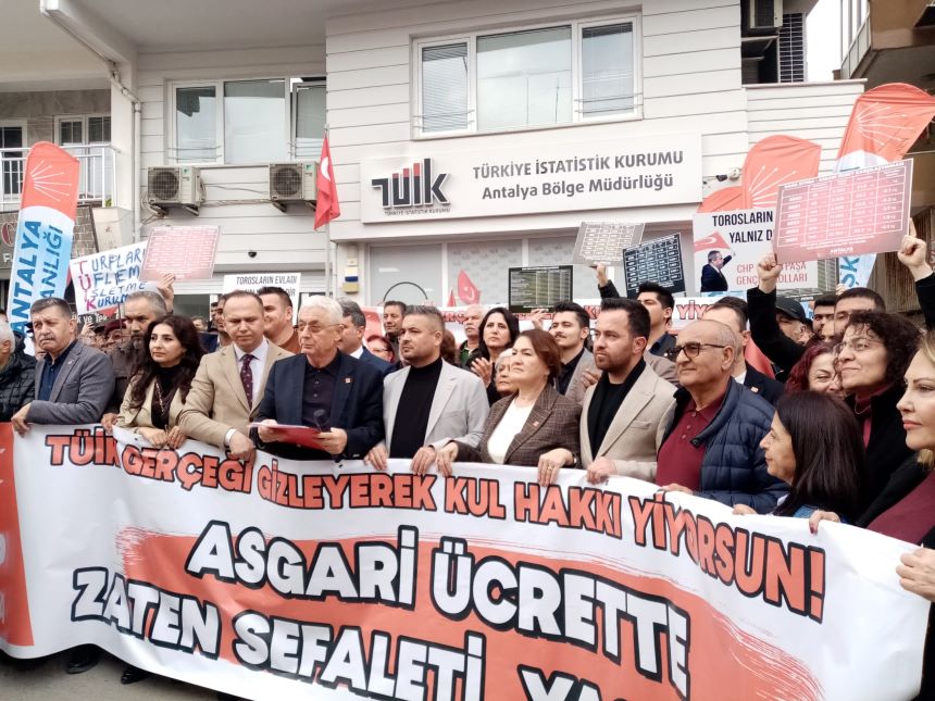 Antalya’da Yavuz Özcan Parkı’nda toplanan CHP’liler ile emekli vatandaşlar buradan TÜİK Antalya İl Müdürlüğüne yürüdü. Yürüyüşün ardından basın açıklaması gerçekleştiren CHP İl Başkanı Nail Kamacı, TÜİK’in ortaya koyduğu rakamların gerçeği yansıtmadığına dikkat çekti. Emekli maaş zamlarının bugün netleştiğini anlatan Kamacı, gerçek rakamların, pazarda, kira ödemesinde, fatura ödemesinde ve markette yaşandığını söyledi.