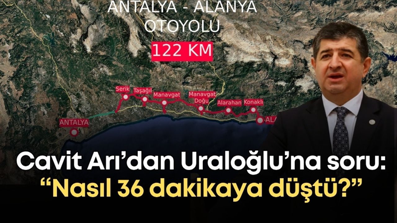 Cumhuriyet Halk Partisi Antalya Milletvekili Cavit Arı, Ulaştırma ve Altyapı Bakanı Abdulkadir Uraloğlu’nun Antalya-Alanya arası ulaşıma yönelik yaptığı açıklamalara dikkat çekti. TBMM Plan ve Bütçe Komisyonu’nda konuşan Arı, “Ulaştırma Bakanı Alanya - Antalya arasını 36 dakikaya düşüreceğiz diyor. Sayın Bakana sordum. Siz bu açıklamayı bilerek mi yaptınız yoksa yanılttılar mı diye. Anladık ki Bakan bu hayali açıklamayı bilerek ve isteyerek yapmış. 1,5 yıldır “kazma vurduk” deniyor ama Antalya–Alanya Otobanı hâlâ yok. Maliyet? Geçiş ücreti? Araç garantisi? Garanti süresi? Hiçbiri açıklanmadı” diye konuştu.