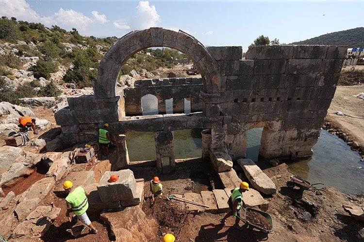 Antalya’nın Demre ilçesinde, Roma dönemine ait 1850 yıllık nymphaion yapısında sürdürülen kazı ve restorasyon çalışmalarıyla antik yapı yeniden işlevsel hale getirilecek. Magnezyum, demir, kükürt ve fosfor içeren şifalı su kaynağı üzerine inşa edilen yapı, çevresindeki hamam, su kemeri ve sarnıçlarla birlikte bir sağlık kompleksi niteliği taşıyor.