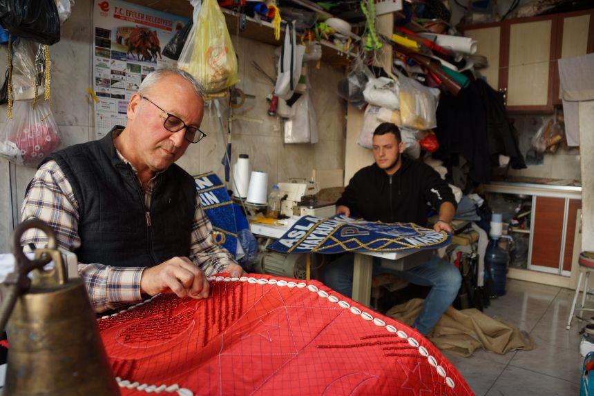 Develerini gelin gibi süsleyip güreş alanına çıkarmak isteyen deveciler, havudu süslemek için saraçlarda iş yoğunluğu oluşturdu. Özellikle develerinin süslü ve şık görünmesini isteyenler, 40 yıldır Aydın'da saraçlık yapan Süleyman Korak'ın kapısını çalıyor. Rengarenk süslerin siparişini veren devecilere ürünlerini yetiştirmek için Süleyman Korak ve oğlu Cavit Korak, yoğun bir mesai sürdürüyor. Dede mesleğini sürdüren Süleyman Korak, oğlu ile birlikte yapımı oldukça zahmetli olan süs eşyalarını hazırlıyor.