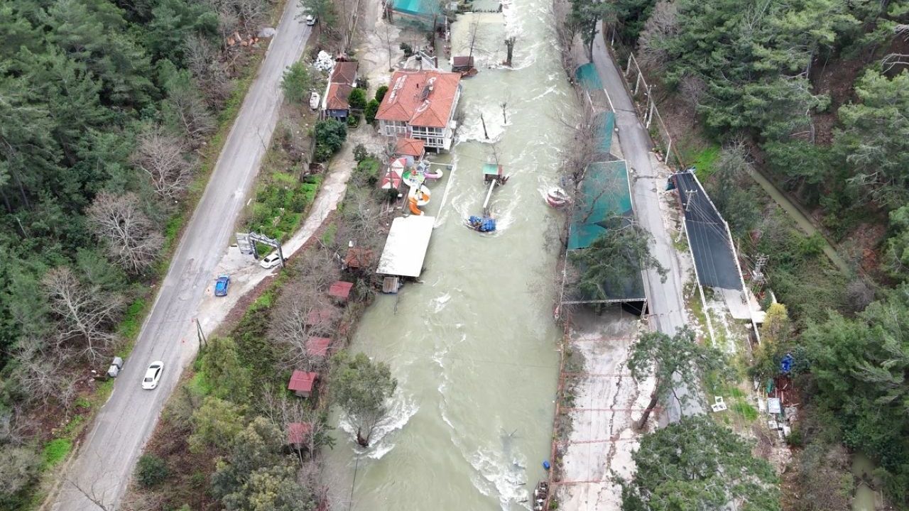Antalya'nın Alanya ilçesinde aralıksız devam eden yağışların ardından Dim Barajı kapakları kontrollü şekilde açıldı. Dim Çayı'nın debisinin yükselmesiyle çay kenarındaki işletmeler sular altında kaldı.