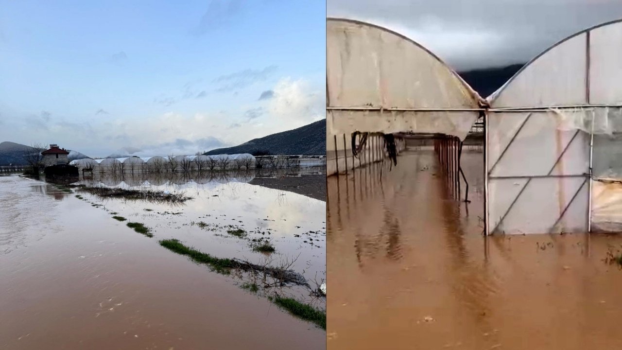 Antalya'nın Elmalı ilçesinde gece saatlerinde sağanak etkili oldu, dereler taştı, bölgedeki birçok tarım arazisi ve sera su altında kaldı.