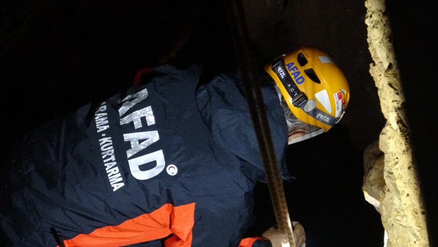 Deniz Limanı Şube Müdürlüğü'ne bağlı Gemi Adamları ekipleri, hava koşullarından dolayı mağaraya botla yaklaşamazken, bir kurbağa adam dev dalgalara rağmen yüzerek mağaraya ulaşmayı başardı. Mahsur kalan kadına üşümemesi için polis dalgıç kıyafeti veren kurbağa adam, kara ekipleri ulaşıncaya kadar gençlere refakat etti.