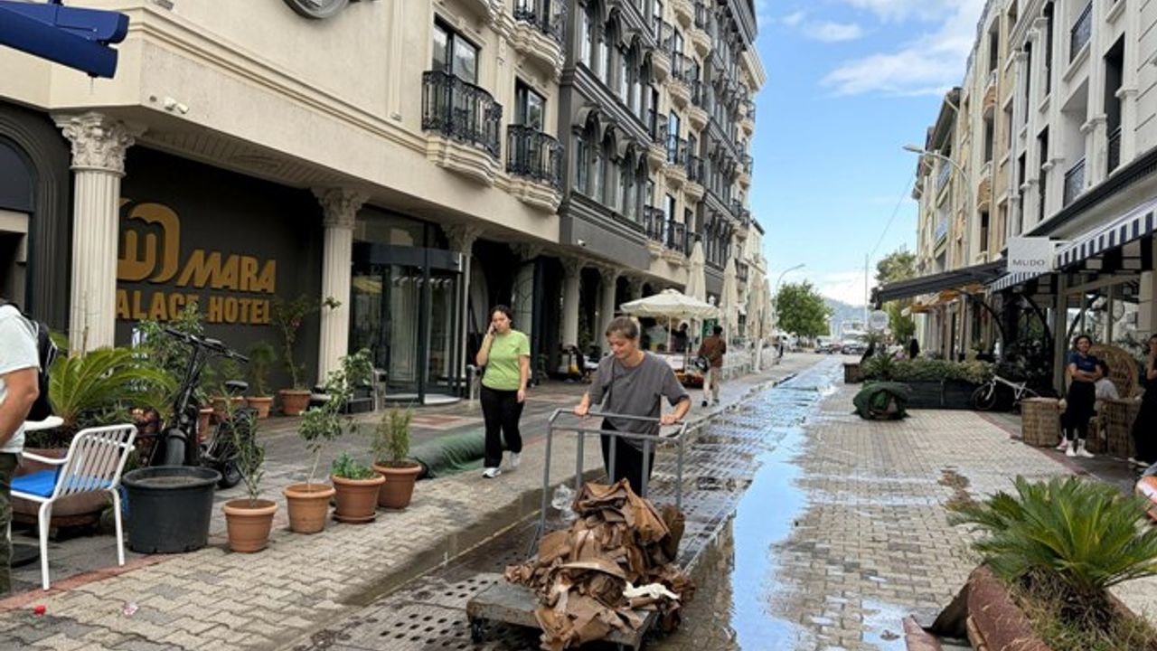 Muğla'nın Fethiye ilçesinde, Meteoroloji Genel Müdürlüğü'nün turuncu kodlu uyarısının ardından etkili olan sağanak yağış, ilçeyi adeta felç etti. Dün öğle saatlerinde başlayan sağanak, cadde ve sokakları suyla doldurdu. Yağışın etkili olduğu bölgelerden biri de Cumhuriyet Mahallesi oldu. Burada, bir otelin giriş katı su altında kaldı. Otelde mahsur kalan turistler, otel çalışanlarının yardımıyla güvenli bölgelere tahliye edildi.