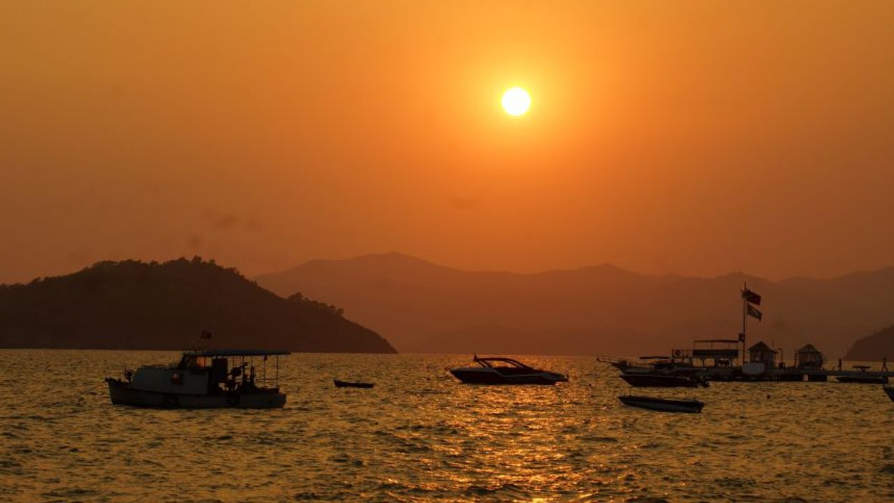 Muğla Fethiye’de gün batımı eşsiz görüntülere sahne oldu.