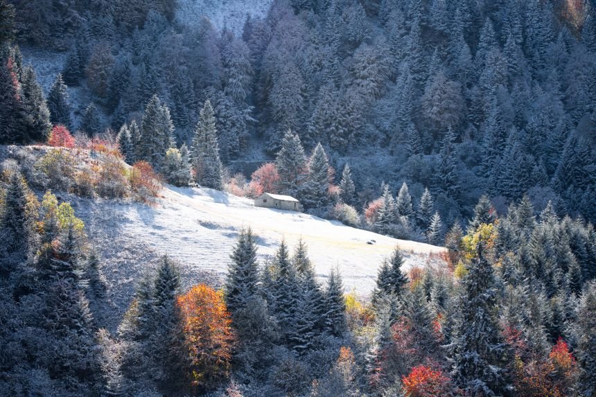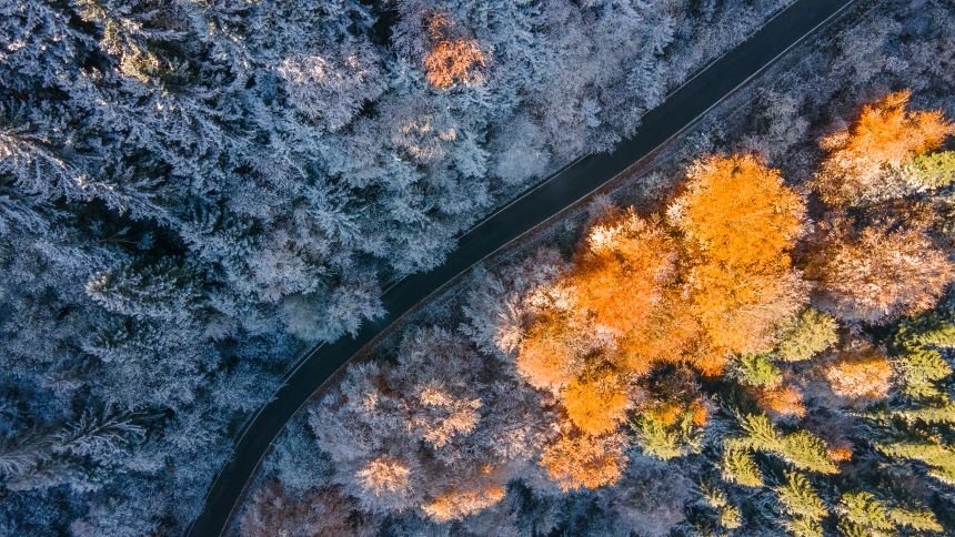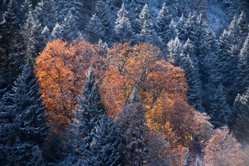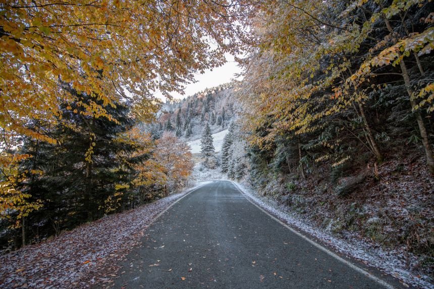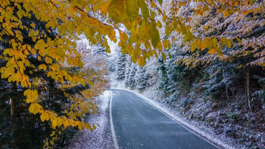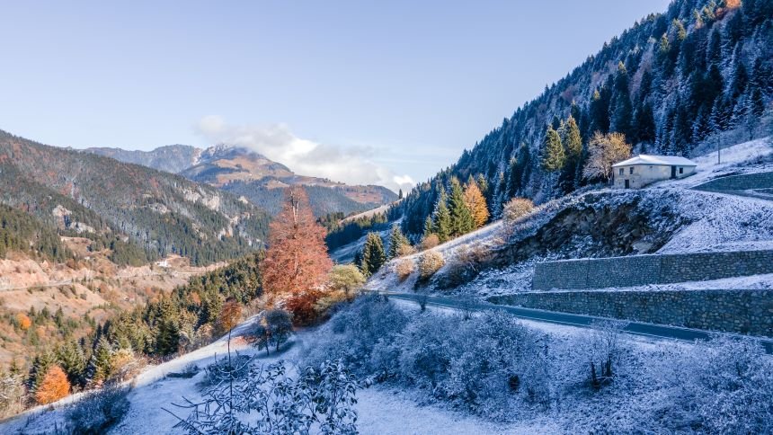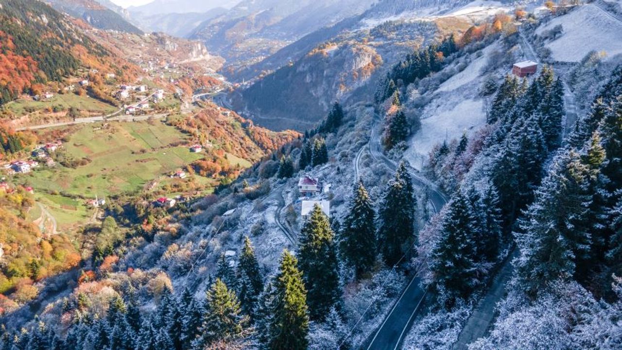 Doğu Karadeniz'i Doğu Anadolu'ya bağlayan önemli kara yolu güzergahlarından biri olan Zigana Dağı Geçidi, sonbaharın son günlerinde yağan karla birlikte iki mevsimi bir arada yaşatıyor. Dağın bir kısmı, ağaçların dökülen sararmış yaprakları ile sonbahar mevsimini andırırken, diğer yanı ise beyaza bürünen ağaçları ile kış mevsiminin en güzel halini yansıtıyor
