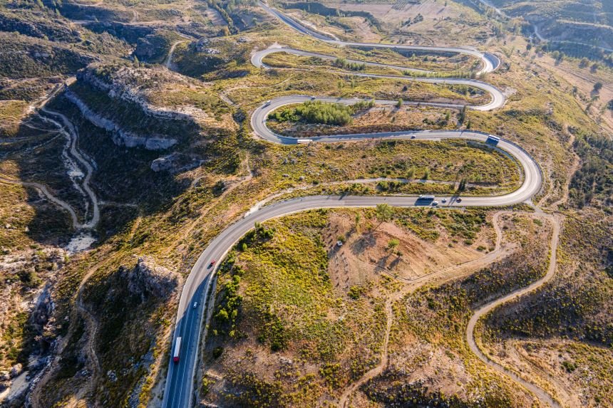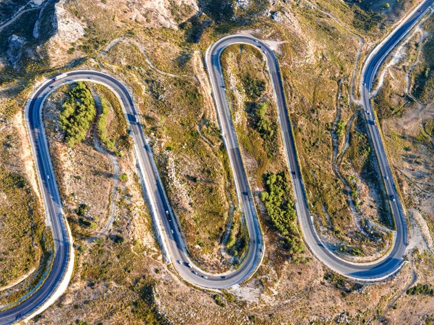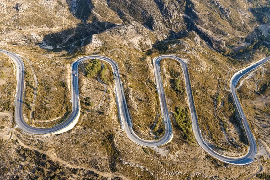 Konya ile Antalya arasında bulunan Taşağıl ilçesindeki kıvrımlı yollar drone ile görüntülendi