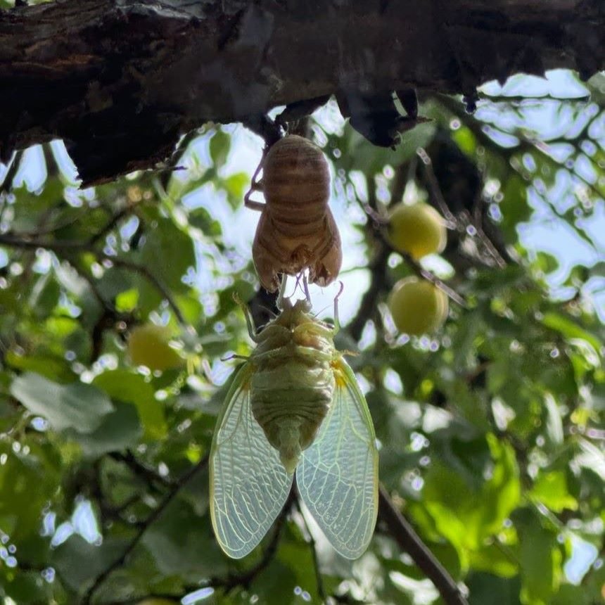 Çıkardıkları yüksek sesle sıcak yaz aylarının simgesi olan ağustos böcekleri, sıcakların artmasıyla beraber kozalarından çıkmaya başladı. Malatya’da bir kayısı bahçesinde, ağaç üzerine bırakılan larvadan çıkan ağustos böceği ise işte böyle görüntülendi.