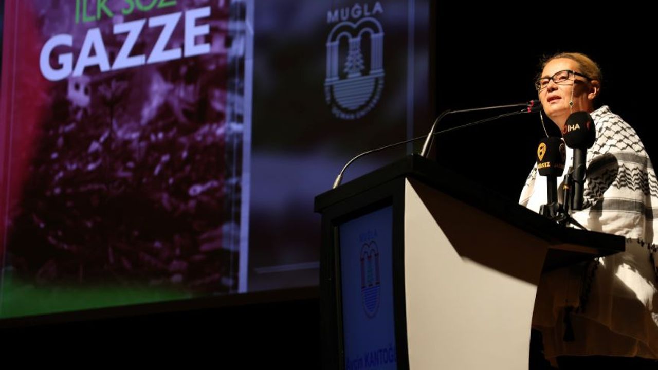 Muğla Sıtkı Koçman Üniversitesi 2025-2026 Eğitim ve Öğretim Yılı akademik Açılış törenine katılan ‘Anadolu'dan Gazze'ye' Platformu Başkan Yardımcısı aktivist Ayçin Kantoğlu ‘İlk Söz Gazze' konulu konuşma gerçekleştirdi.
